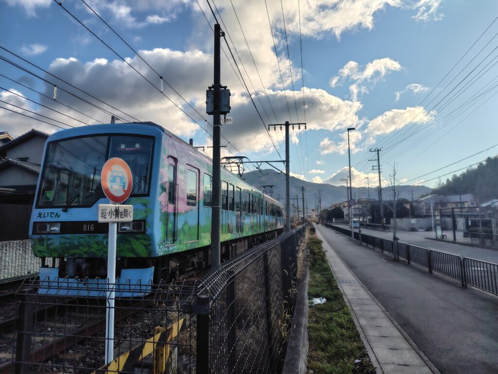 今日はいい天気です。走ってる途中、H叡山をバックに走るA山電鉄が撮れました。ちなみに撮り鉄ではありませんがローカル線は大好きです。